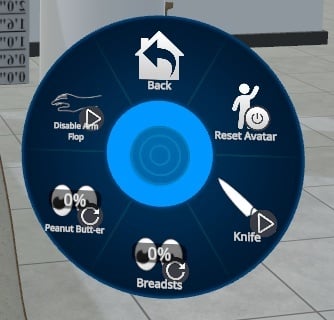 - Disable arm flop (Avatars arms are floppy, due to her being...you know... a sandwich. This toggles that off.)